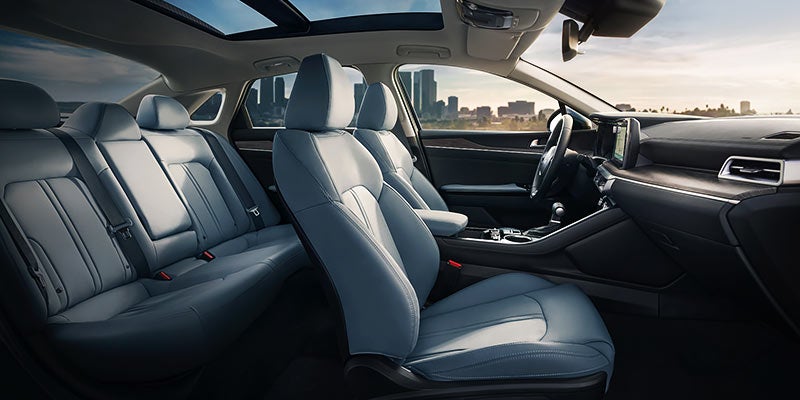 Up to five people ride in comfort on the two rows of seats found inside the K5. Premium cloth fabric comes on the lower trims, and as you move up the tiers, you get simulated leather upholstery, power-adjustable climate-controlled seats, driver's seat memory settings, and a heated steering wheel. You'll have plenty of space for supplies with 16 cubic feet of cargo space inside of the K5's trunk.