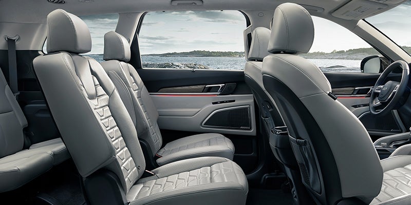 Stepping inside the cabin of the 2022 Telluride, you'll notice a high-quality and spacious interior. Depending on the interior configurations, the SUV can seat up to eight people. The front seats remain comfortable and supportive, even on long trips, and all three rows are roomy enough for taller riders. Not only does the Telluride boast ample space for passengers, but its cargo area is equally expansive. You'll get 21 cubic feet of space behind the third-row seats and 46 cubic feet when you fold them down. Folding down all the rear seats will give you 87 cubic feet of space, which is above average compared to other vehicles in its class.