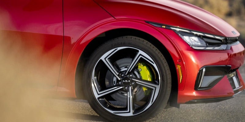 The GT adds a sport suspension that is firm yet never harsh. Every EV6 features a regenerative braking system that sends excess braking energy back to the EV6's battery and lets you use steering-wheel-mounted paddle shifters for a more hands-on drive.