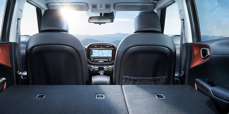 The 2023 Soul is a four-door hatchback that comfortably seats up to five people. The cargo space behind the car’s rear seats measures 24.2 cubic feet and increases to 62.1 cubic feet when the seats are folded down, offering plenty of room for transporting luggage.